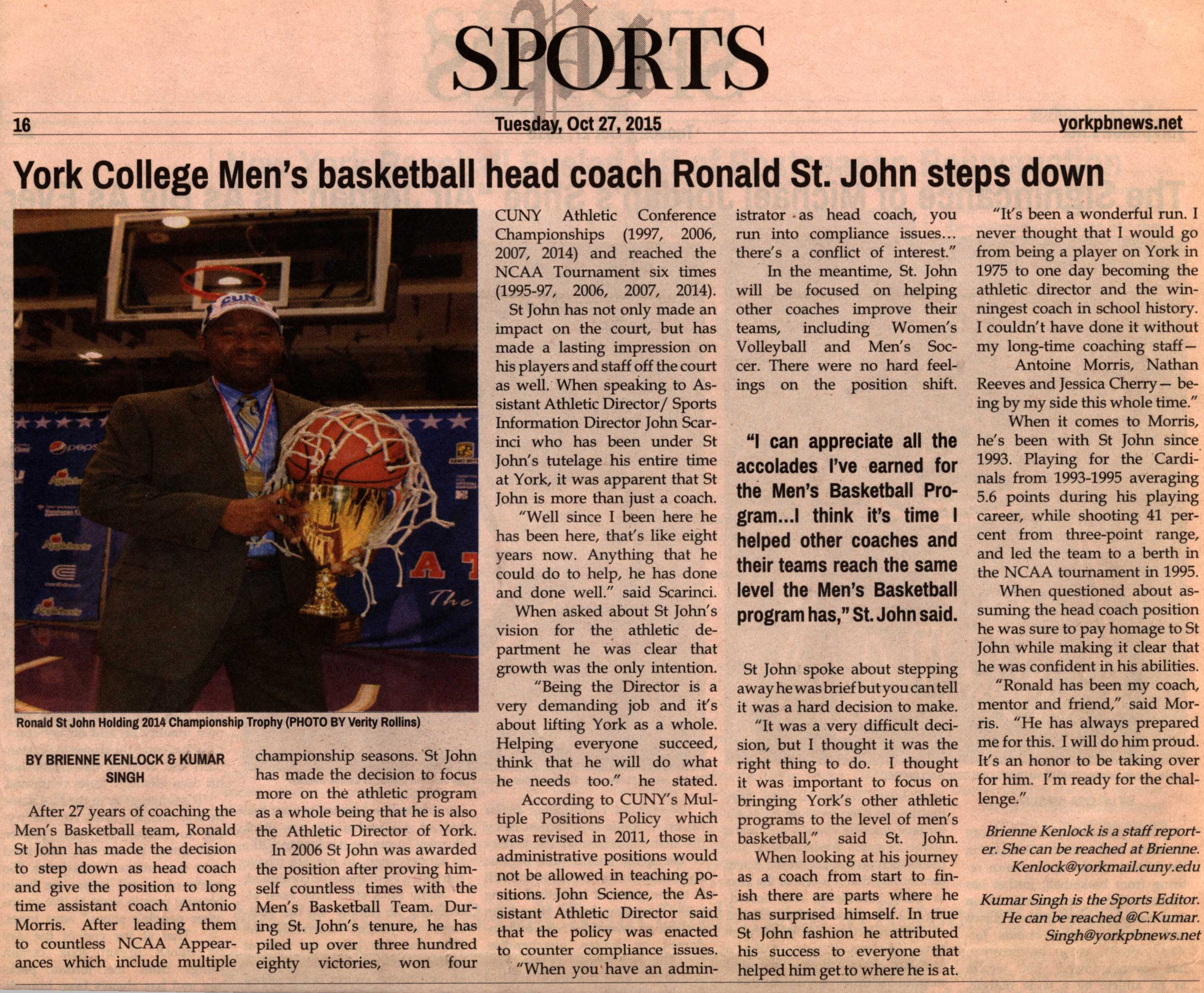 St. John Steps Down
